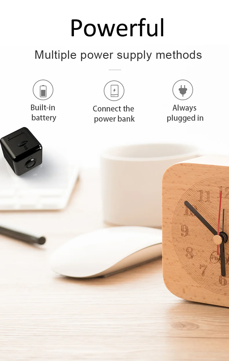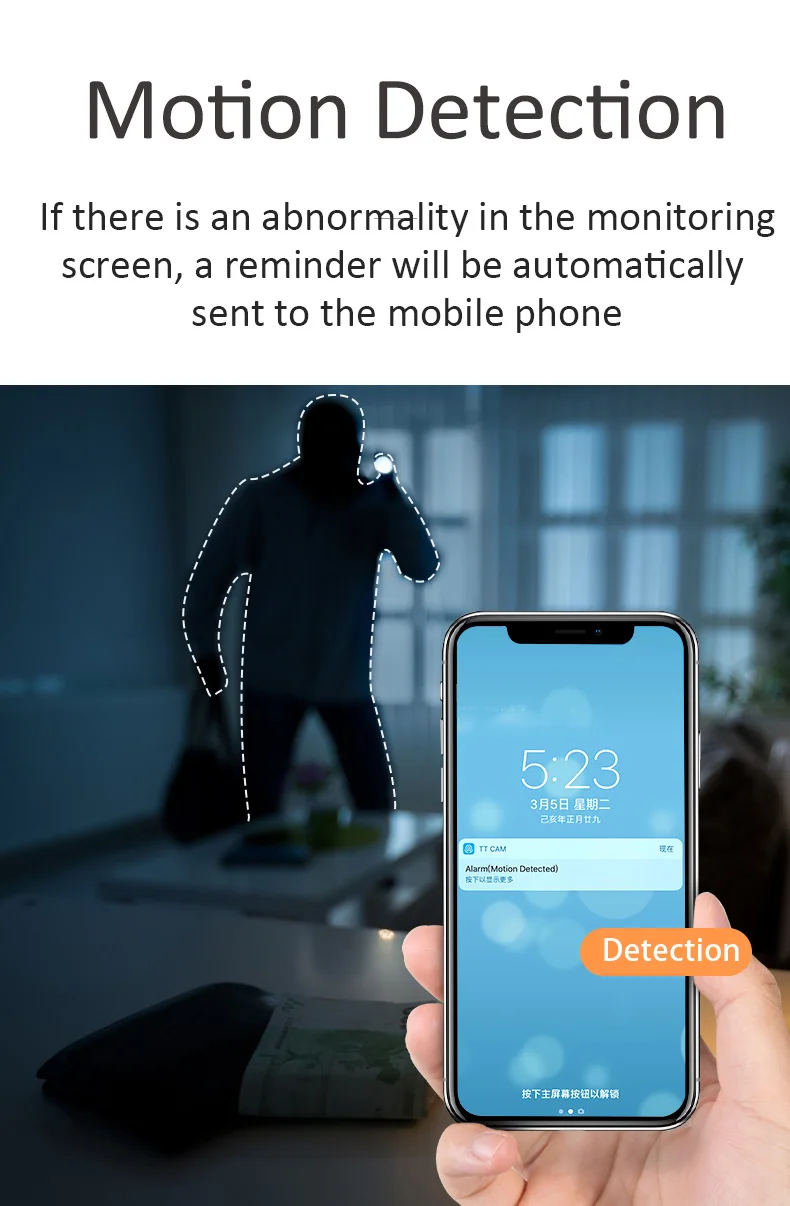 camera with the upgraded intelligent motion detection, you can set the sensor sensitivity manually. Once a motion is detected, the small camera will send alarm notification with images to your phone. You can log into the App to see what's going on in real time and never worry about missing something importantNever Stop Video