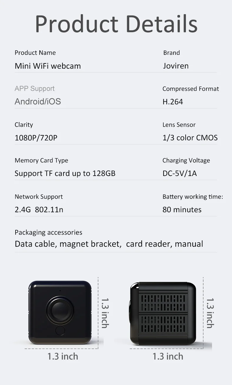 Smaller wireless monitoring-- is 2023 latest design mini portable camera for indoor/outdoor. It?s smallest wifi camera with app.
