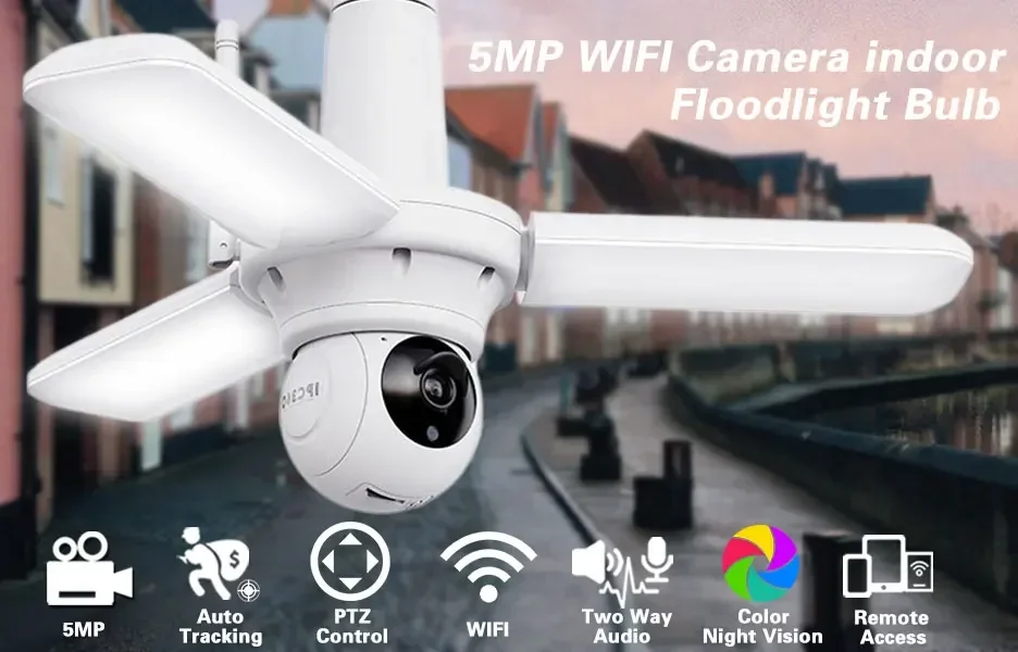 Smart 5MP WIFI Security Camera E27 Bulb Floodlight 2K HD Video Wireless Surveillance IP Cameras Wi-Fi PTZ Home CCTV Night Vision