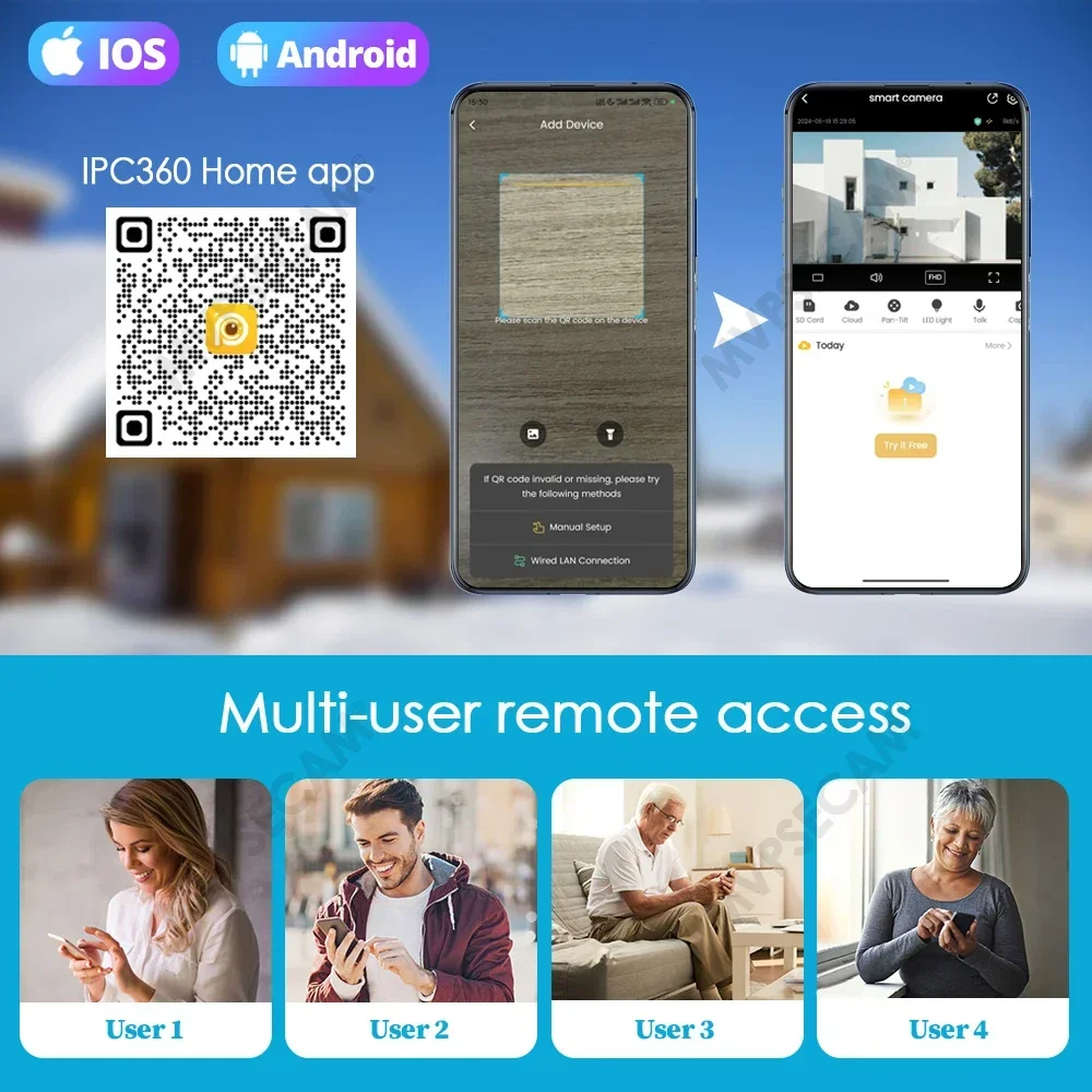 2. 5MP HD WIFI IP Camera, ABS Plastic material,IP66 Waterproof&Dustproof, Suitable for indoor and outdoor, reliable home security;